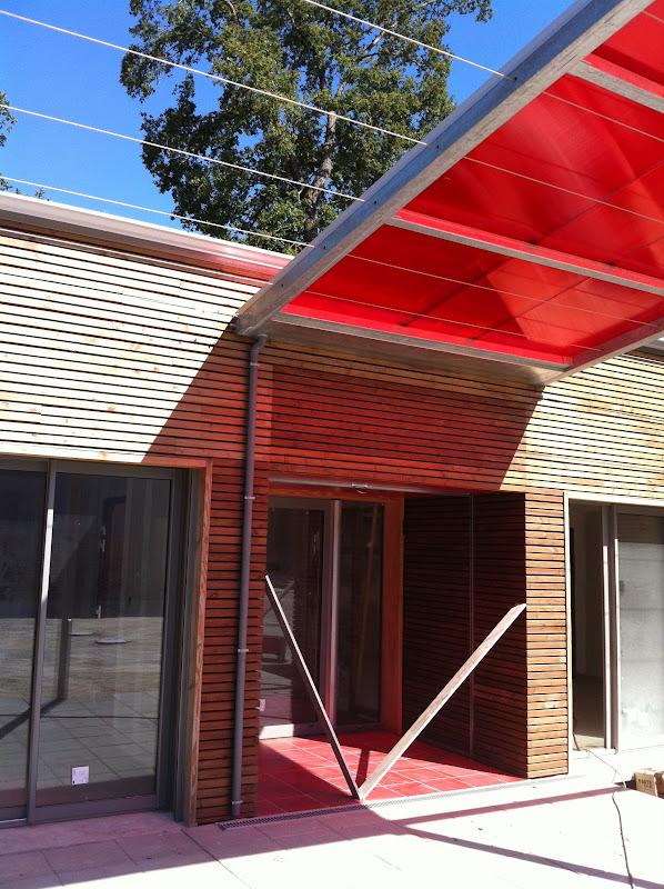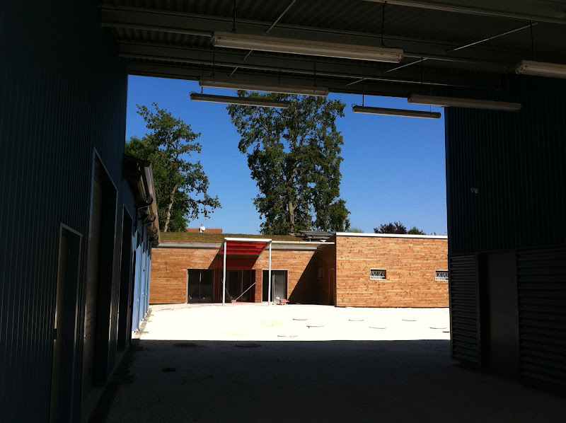 Démarche environnementale : Bâtiment "Vie" BBC, récupération des eaux de pluie, toiture végétalisée, eau chaude solaire...